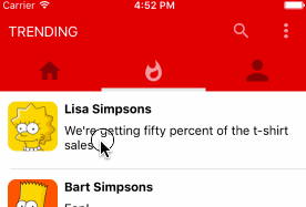 하지만, 이와 같은 형태는 iOS에 없다. 그래서 구현을 해주거나, gif와 같이 XLPagerTabStrip Library를 사용하거나,