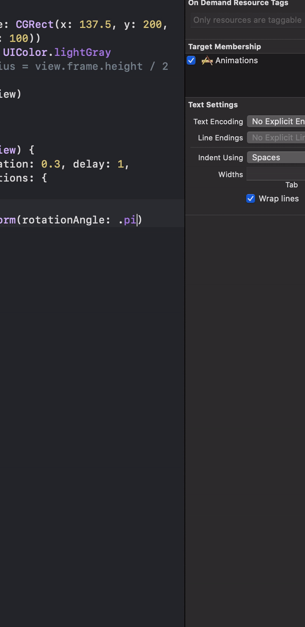 let rotateAnimation = CGAffineTransform(rotationAngle: .pi)