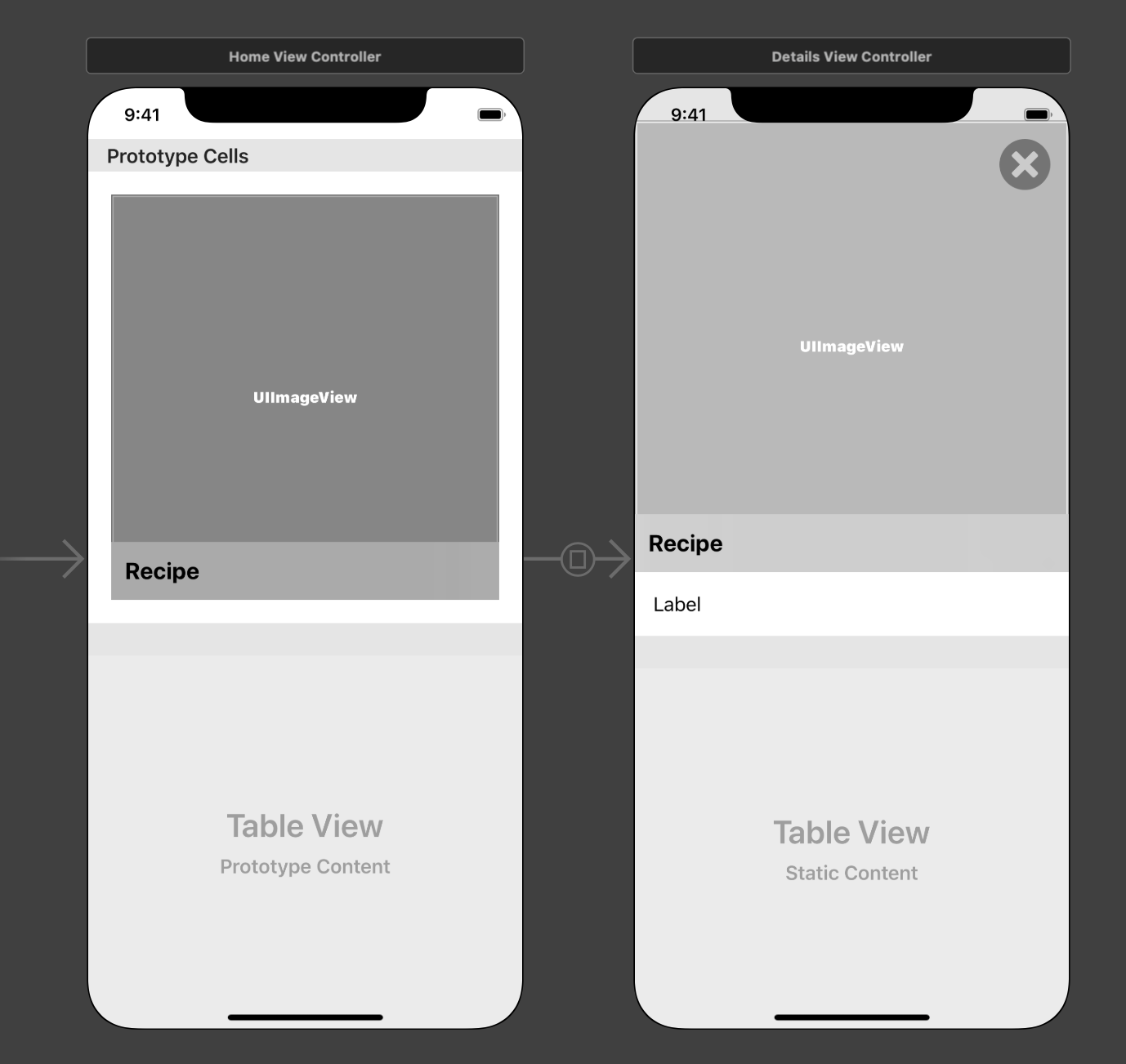 HomeVC와 DetailVC는 Segue로 연결되어 있습니다.