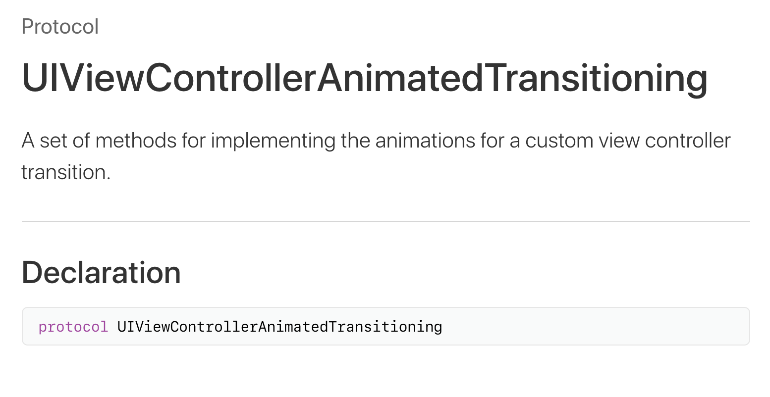 바로 얘입니다. 아까 파란색 걔. UIViewControllerAnimatedTransitioning.